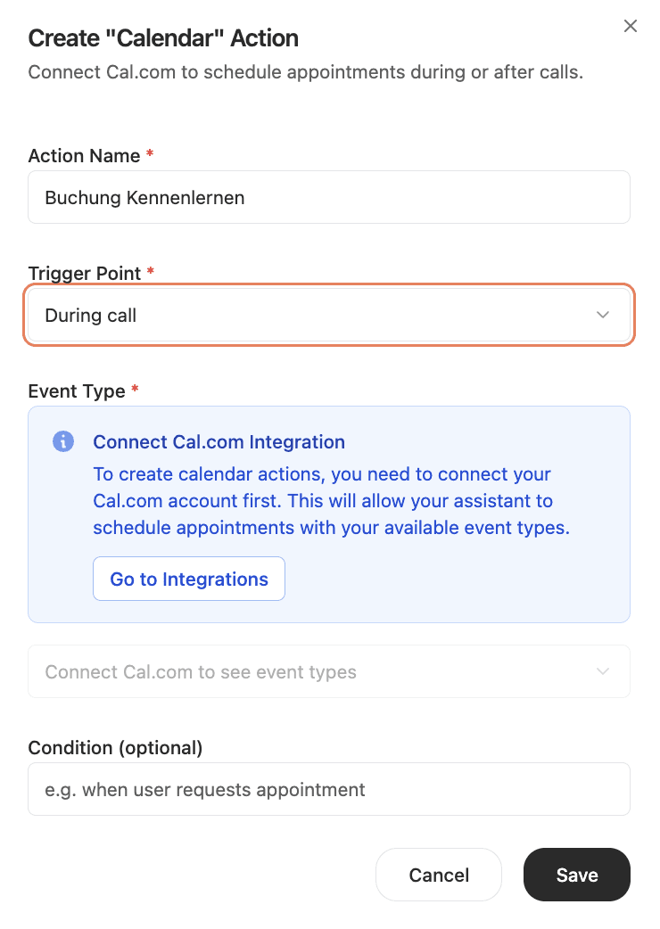 Direkte Terminvereinbarung am Telefon. Der Assistent trägt Buchungen automatisch in deinen Google- oder Outlook-Kalender ein.